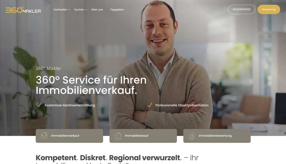 Wir entwickeln Webauftritte speziell für Immobilienmakler, die gezielt Vertrauen aufbauen und Ihre Kompetenz klar vermitteln. In wenigen Sekunden wird verständlich, wofür Sie stehen und warum Eigentümer sich für Sie entscheiden sollten.